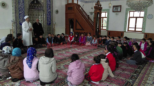 Cami İmamı Muhammet Balcı çocuklarımızı her zaman camide görmekten mutlu olduklarını ifade etti ve merak ettiğiniz konularda siz öğrencilerimize cevap vermek için her zaman hazır olduğunu hiç çekinmeden dini konularda sorularını beklediğini ziyarete gelen çocuklara belirtti.