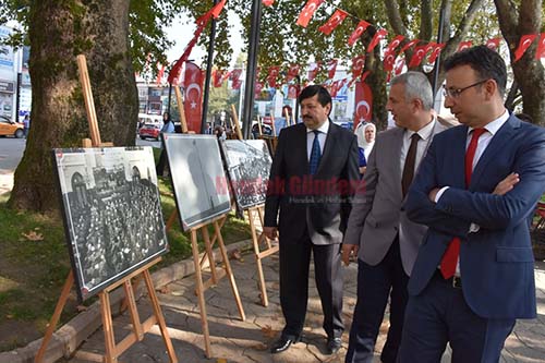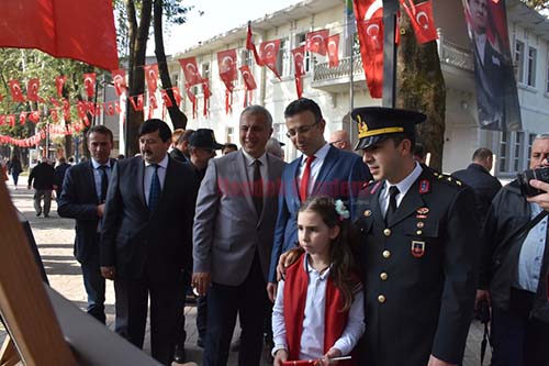 Çelenk koyma programı sonrası Kaymakam Vekili Yakup Güney, Hendek Belediye Başkanı Turgut Babaoğlu ve beraberindekiler Hendek Belediyesinin açtığı resim sergisini gezdiler.