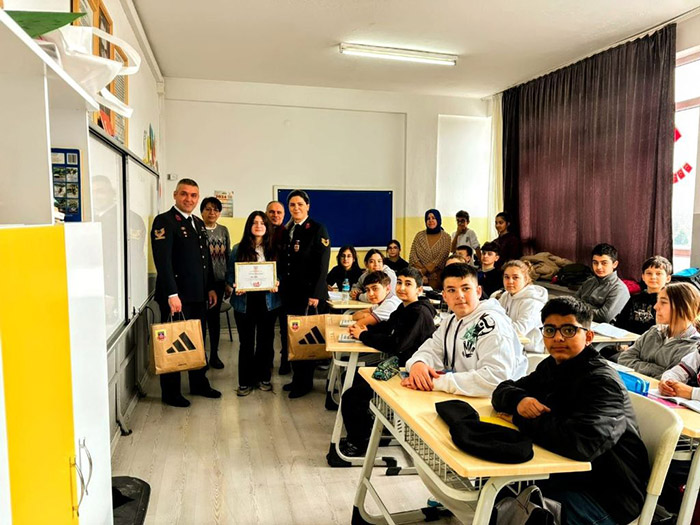 Söz konusu yarışma kapsamında, “Türkiye Genelinde” Sakarya ilimizden 1’inci olan Hendek Devlet Bahçeli Fen Lisesi öğrencisi Tuana Yaren Tezer, Hendek Cumhuriyet İlkokulu öğrencisi Rüzgar Ersöz ve Serdivan Zübeyde Hanım Ortaokulu öğrencisi Duru Kahya’ya Jandarma Genel Komutanlığı tarafından gönderilen hediyeleri Sakarya İl Jandarma Komutanlığı personeli tarafından verildi