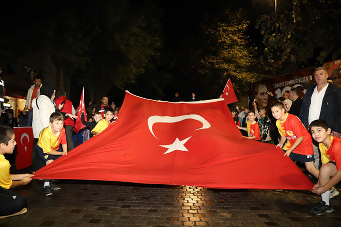 Hendek Belediyesi tarafından düzenlenen fener alayına genci yaşlısı binlerce kişi katıldı. Dev Türk Bayrağı ve müzikler eşliğinde yürüyen kortejdeki Cumhuriyet coşkusu görülmeye değerdi.