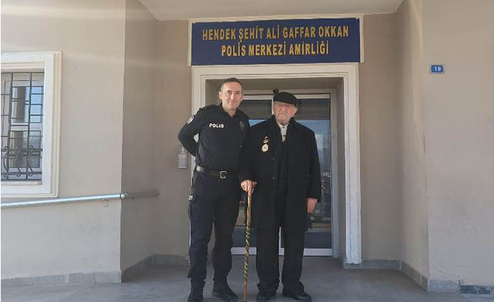 Hendek'in yaşayan tarihi Rüştü Çürüksulu, Hendek İlçe Emniyet Müdürlüğünü ziyaret etti.