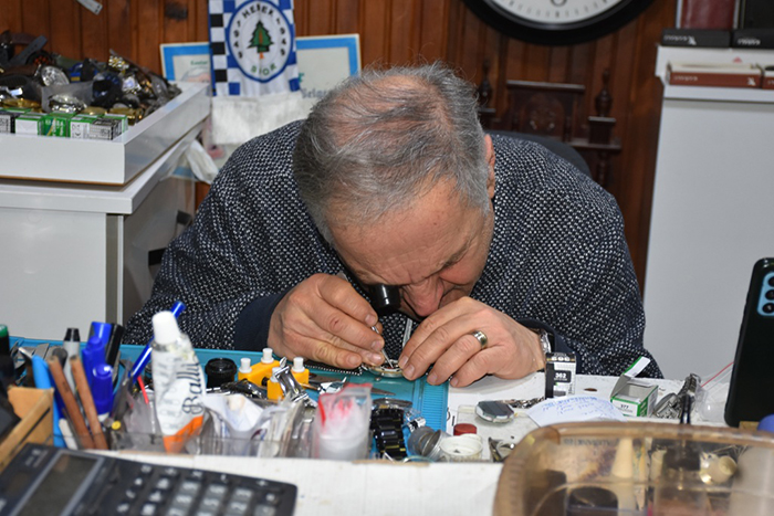 Dede ve babasından miras kalan mesleği sürdüren 65 yaşındaki Osman Mürşit Özger, 50 yıldır saat tamirciliği yaparak ailesinin geçimini sağlıyor.