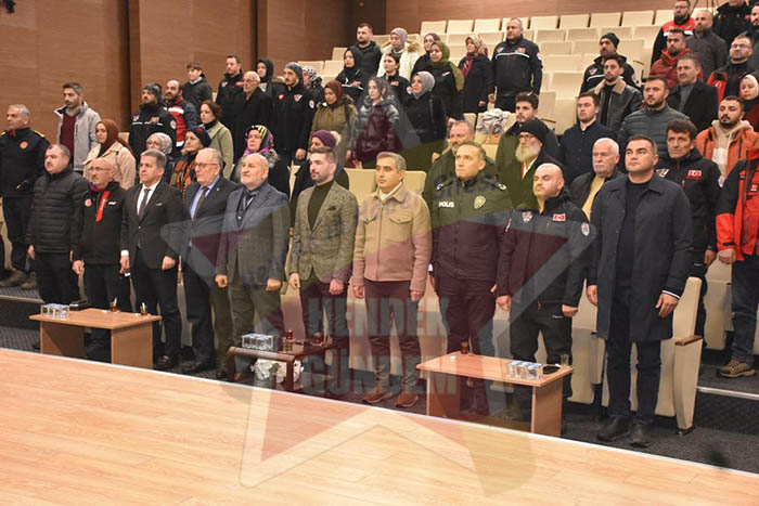 Hendek Belediyesi Kültür ve Sosyal İşler Müdürlüğü Nikâh ve Toplantı Salonunda düzenlenen programa Hendek Belediye Başkanı İrfan Püsküllü, Sakarya Büyükşehir Belediyesi İtfaiye Daire Başkanı Vedat Selamet, AFAD Sakarya İl Müdürü Bekir Şen, AFAD Sakarya Birlik Müdürü Selçuk Arpacıoğlu, Hendek İlçe Emniyet Müdürü Kemal Aydınoğlu, Hendek İlçe Müftüsü Osman Sağlam, Belediye Meclis Üyeleri, AK Parti Hendek İlçe Başkanı Âdem Öz ve Yönetimi, CHP Hendek İlçe Başkanı Nihat Bayraktar ve Yönetimi, Anahtar Parti Hendek İlçe Başkanı Bekir Albayrakoğlu ve Yönetimi, AK Parti Hendek Kadın Kolları Başkanı Süeda Keleş, MHP Hendek Kaçep Başkanı Zübeyde Gürbüz, HİMDER Başkanı Okan Karataş, İHH Arama Kurtarma Ekibi Üyeleri, STK Temsilcileri, Vatandaşlar ve SAKE Gönüllüleri katıldı.