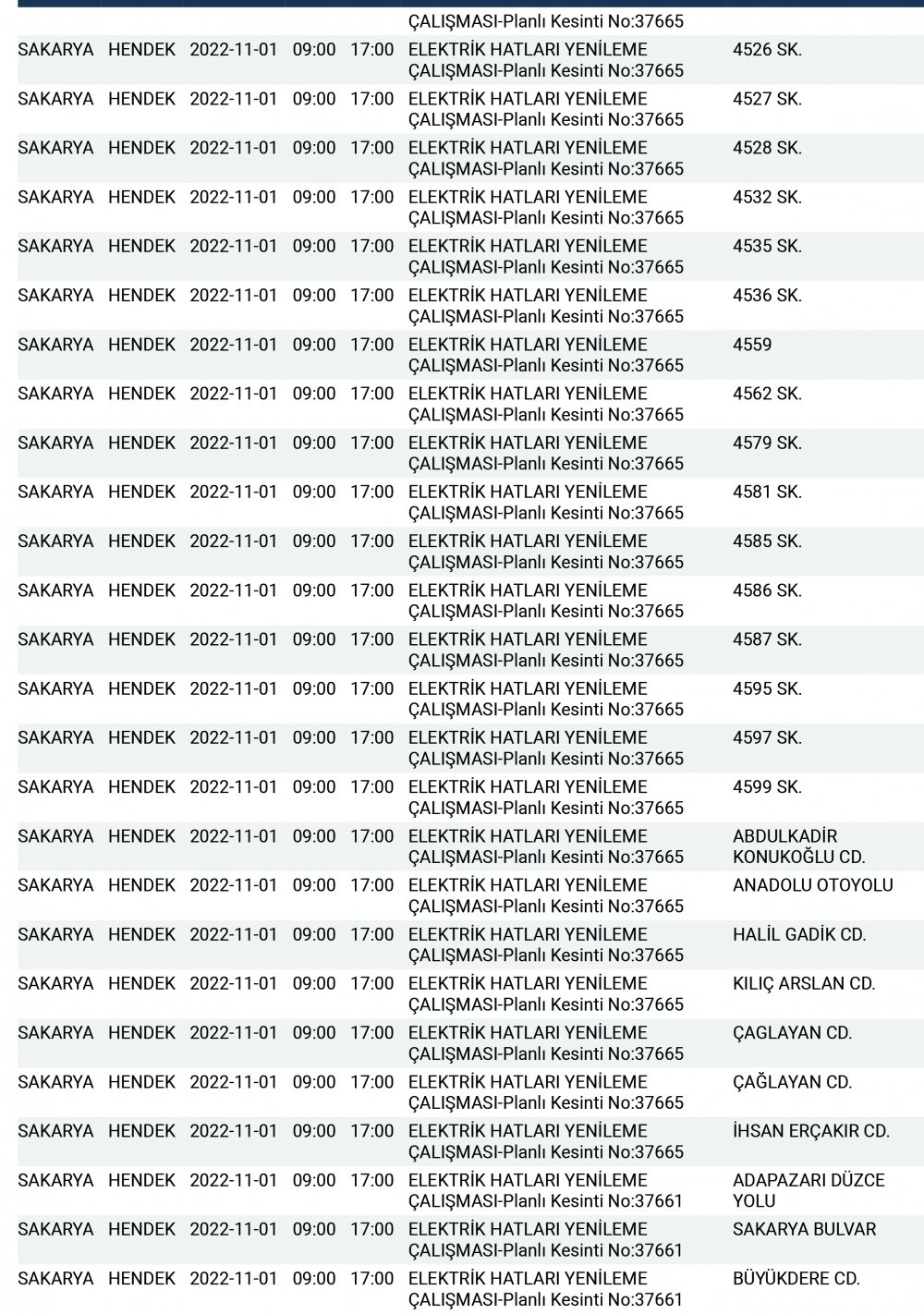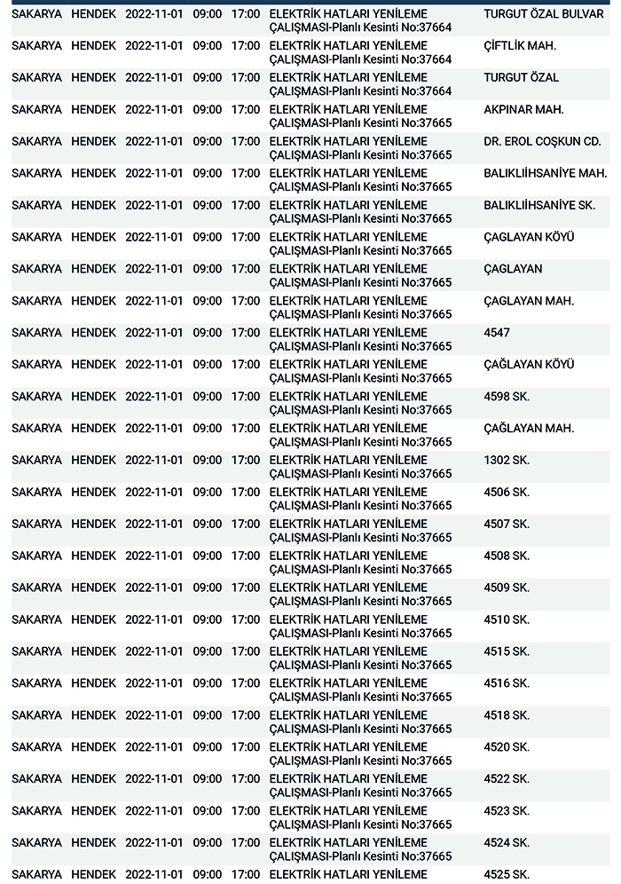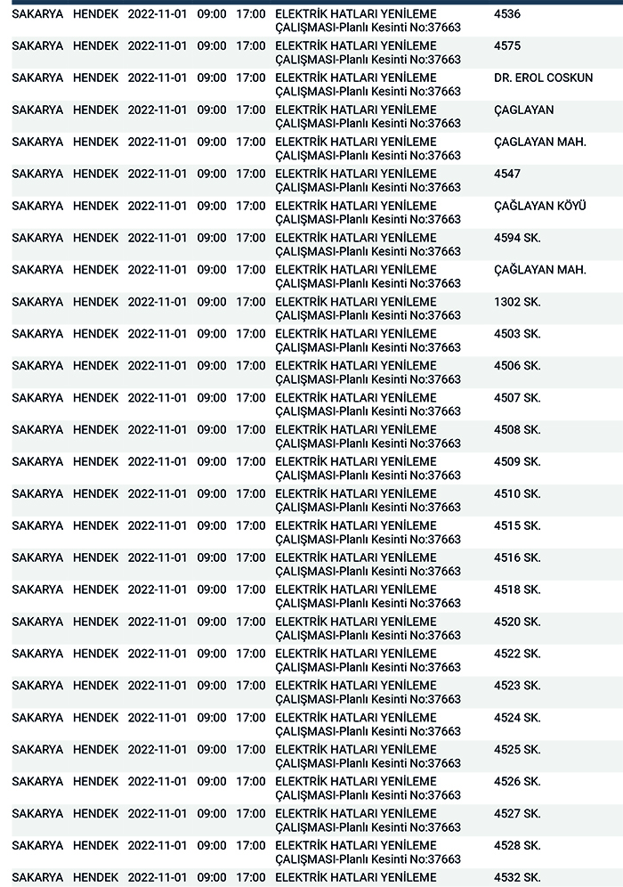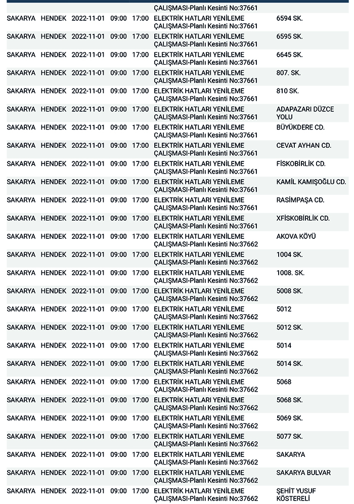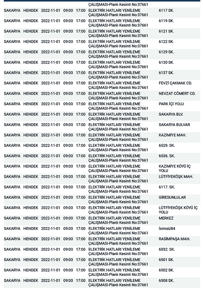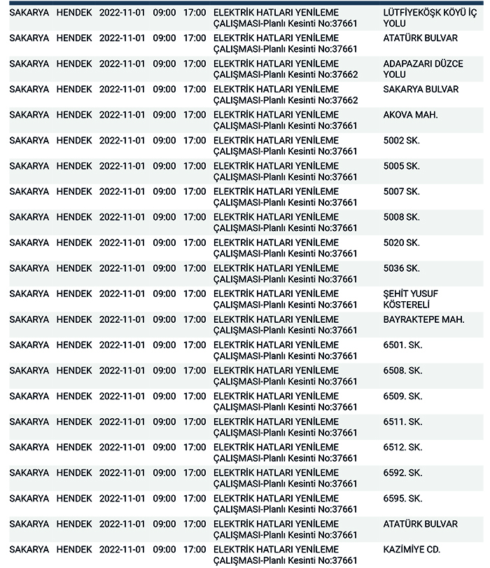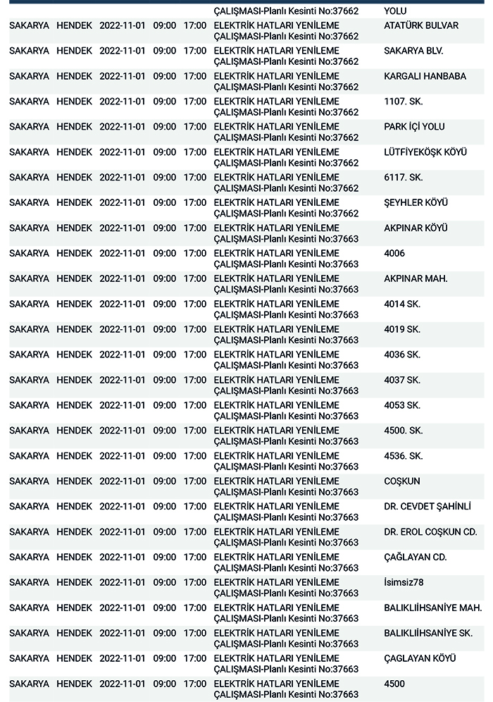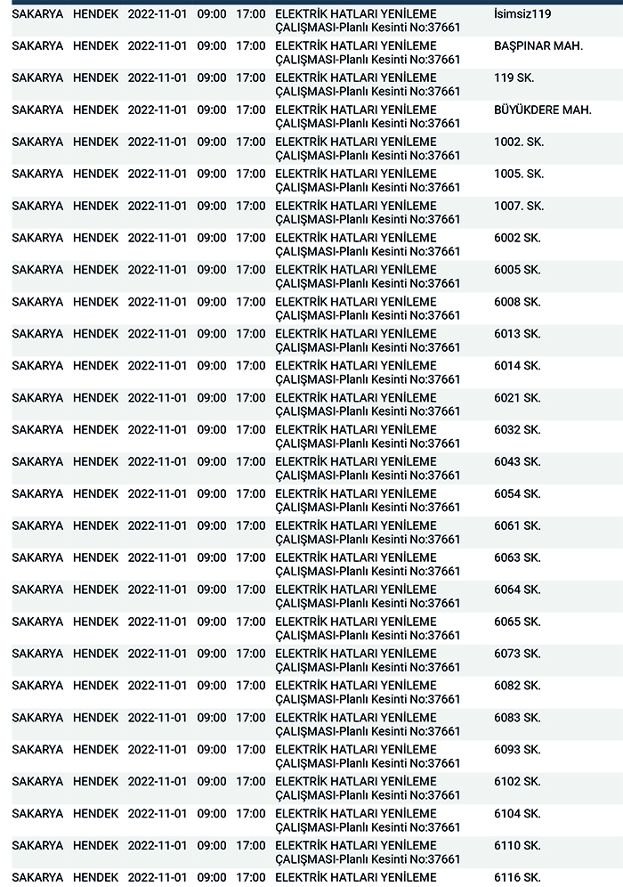 SEDAŞ’tan yapılan planlı elektrik kesintisi duyurularına göre, Hendek’te bugün 178 ayrı noktada Sabah 09:00’dan başlamak üzere 17.00’a kadar “Elektrik Hatları Yenileme Çalışması” kapsamında planlı elektrik kesintisi uygulanacağı öğrenildi.