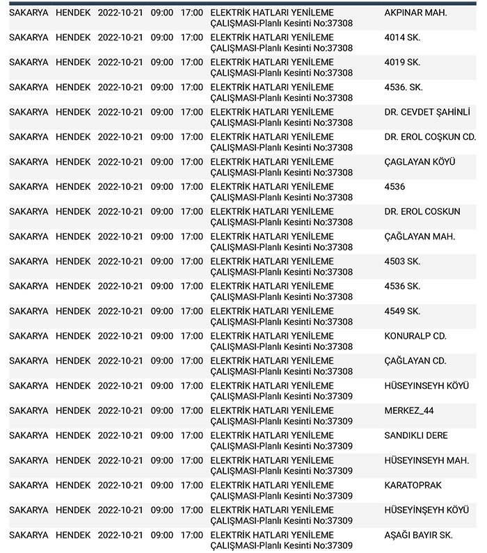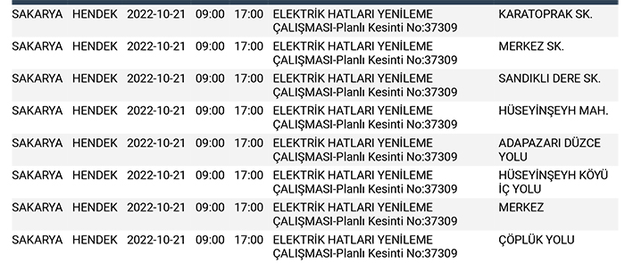 SEDAŞ’tan yapılan planlı elektrik kesintisi duyurularına göre, Hendek’te bugün 30 ayrı noktada Sabah 09:00’dan başlamak üzere 17.00’a kadar “Elektrik Hatları Yenileme Çalışması” kapsamında planlı elektrik kesintisi uygulanacağı öğrenildi.