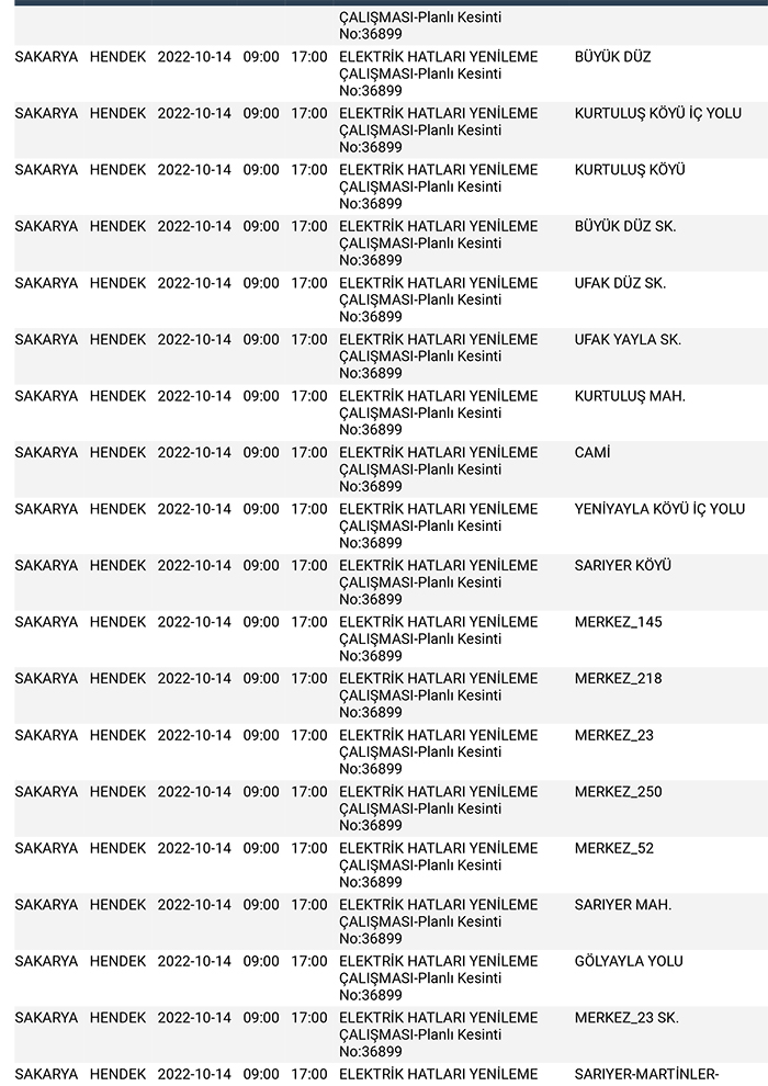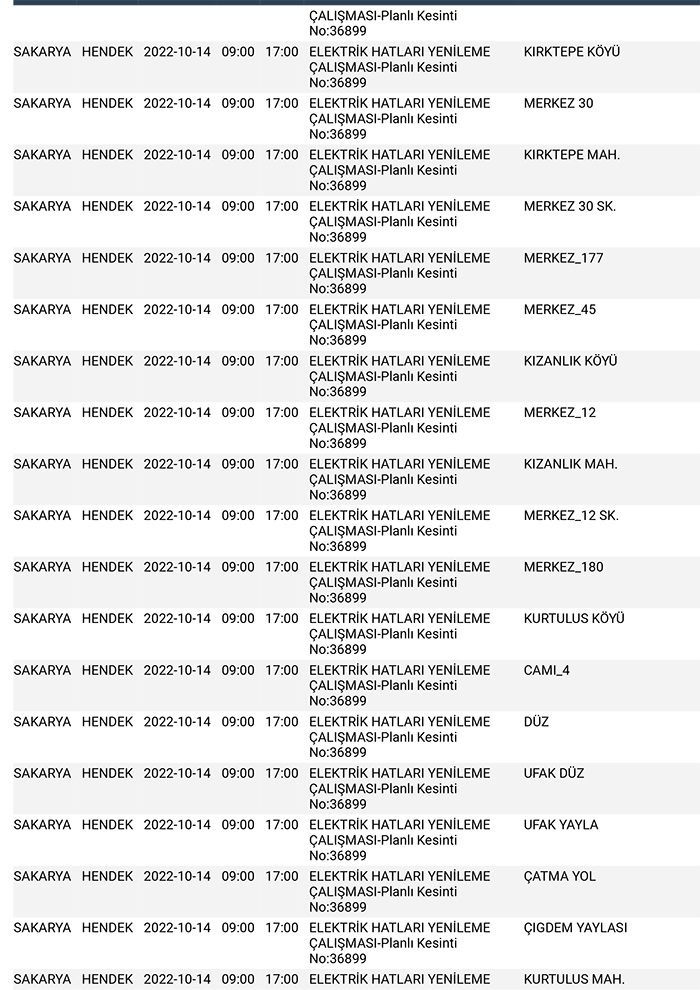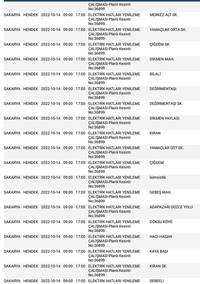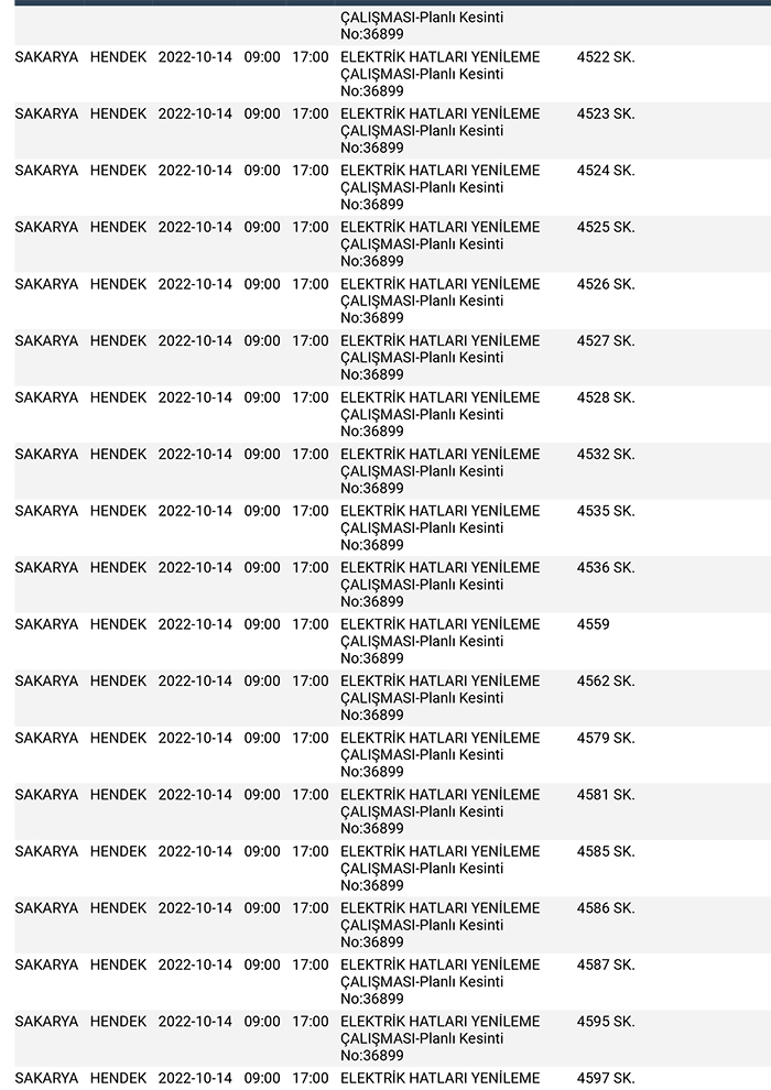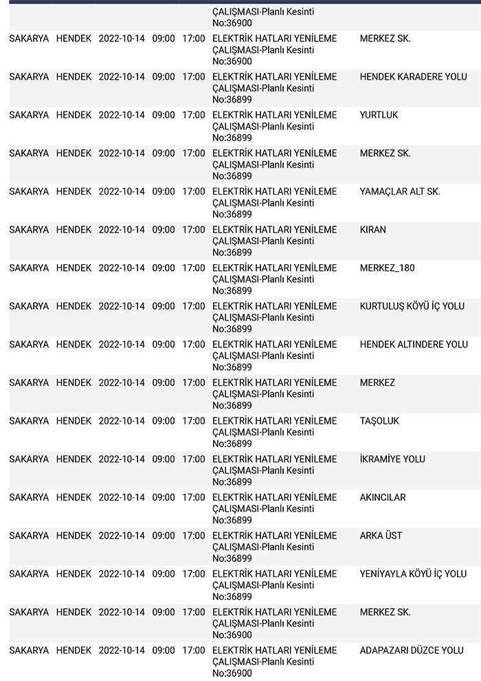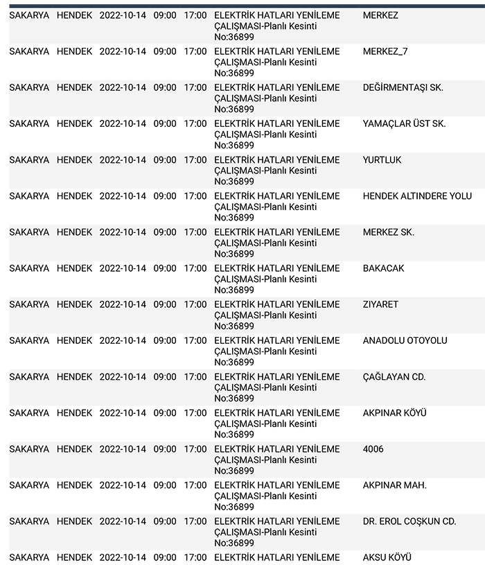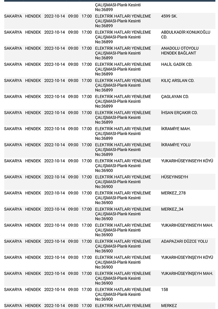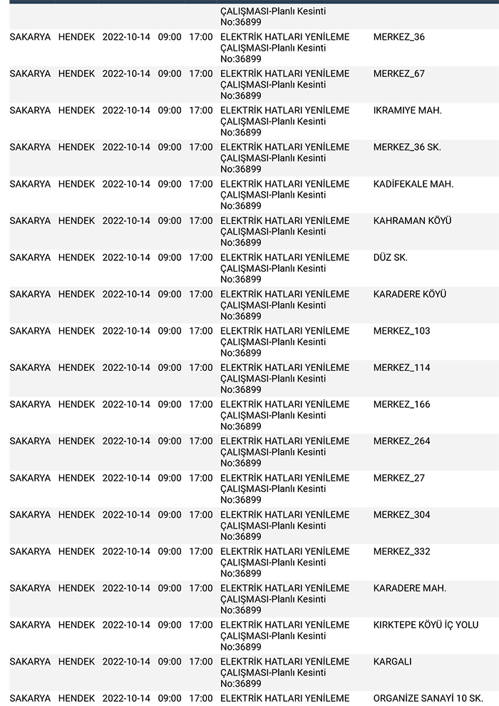SEDAŞ’tan yapılan planlı elektrik kesintisi duyurularına göre, Hendek’te bugün 318 ayrı noktada Sabah 09:00’dan başlamak üzere 17.00’a kadar “Elektrik Hatları Yenileme Çalışması” kapsamında planlı elektrik kesintisi uygulanacağı öğrenildi.