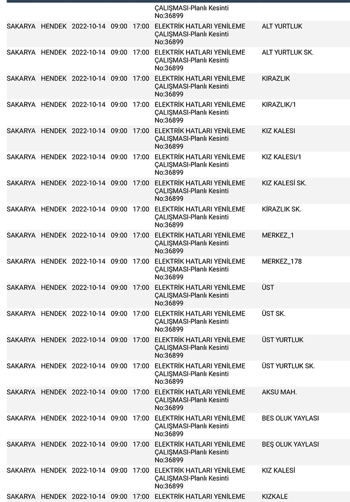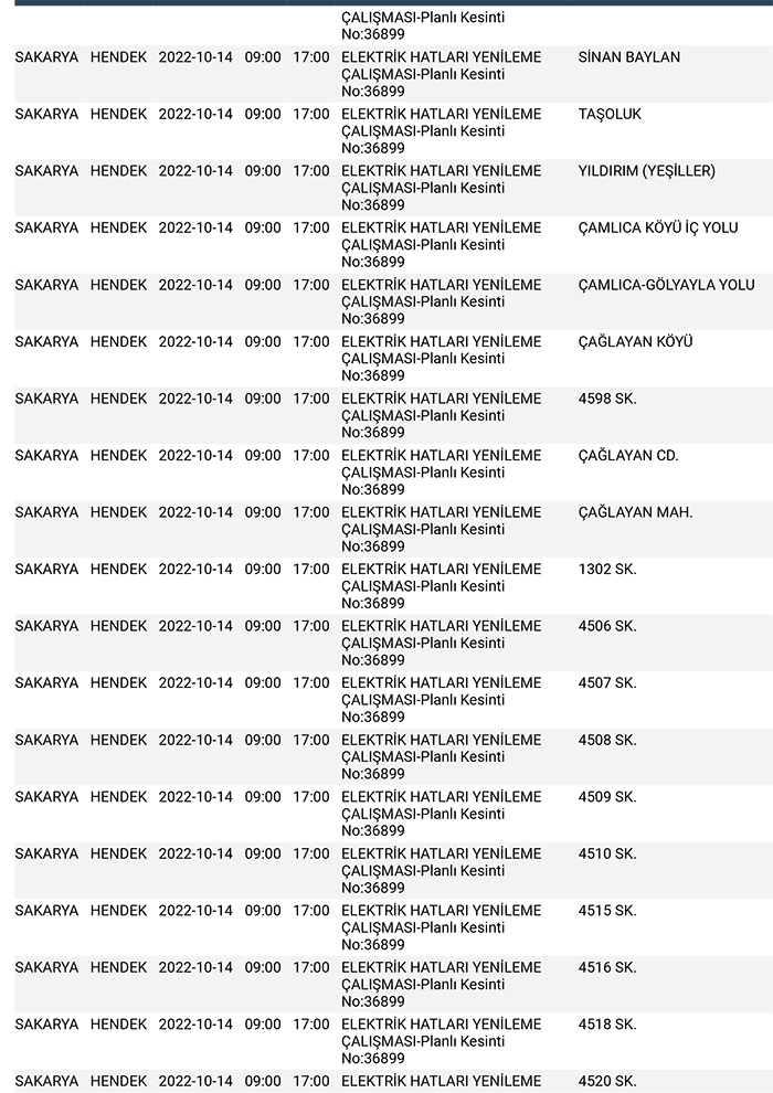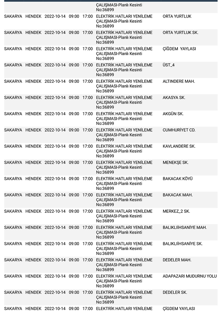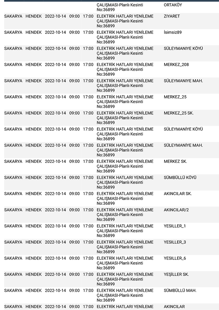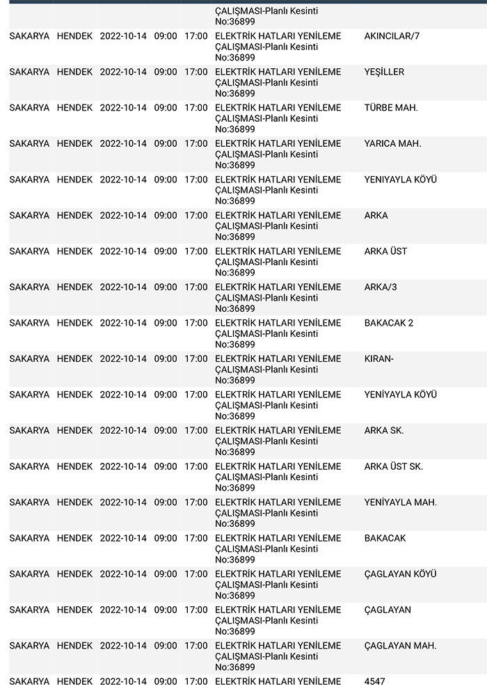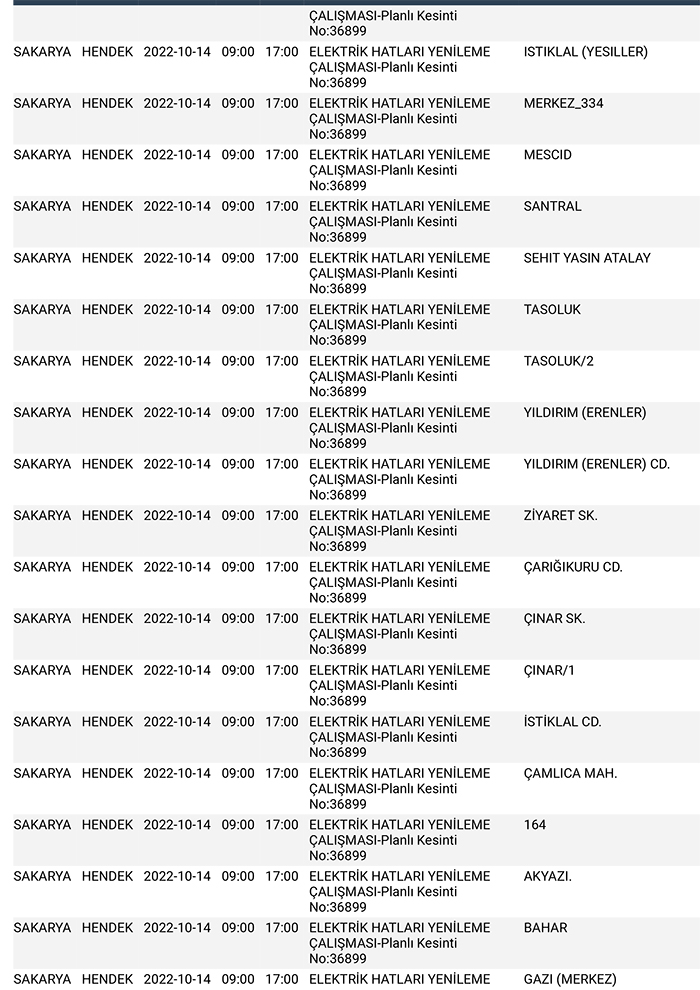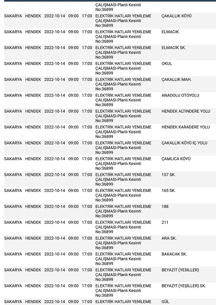 SEDAŞ’tan yapılan planlı elektrik kesintisi duyurularına göre, Hendek’te bugün 318 ayrı noktada Sabah 09:00’dan başlamak üzere 17.00’a kadar “Elektrik Hatları Yenileme Çalışması” kapsamında planlı elektrik kesintisi uygulanacağı öğrenildi.