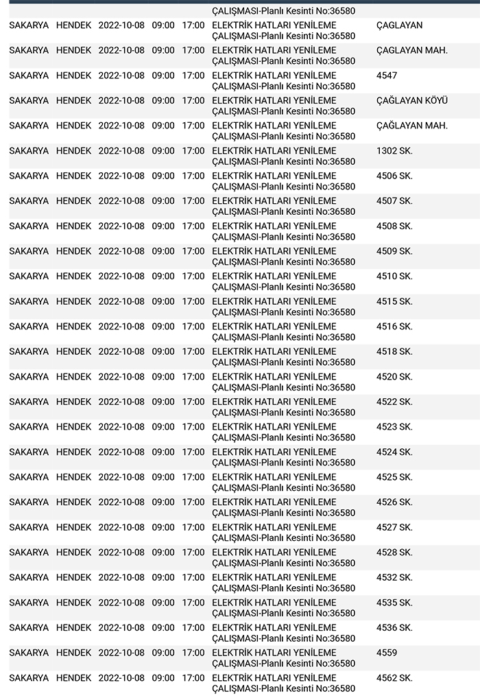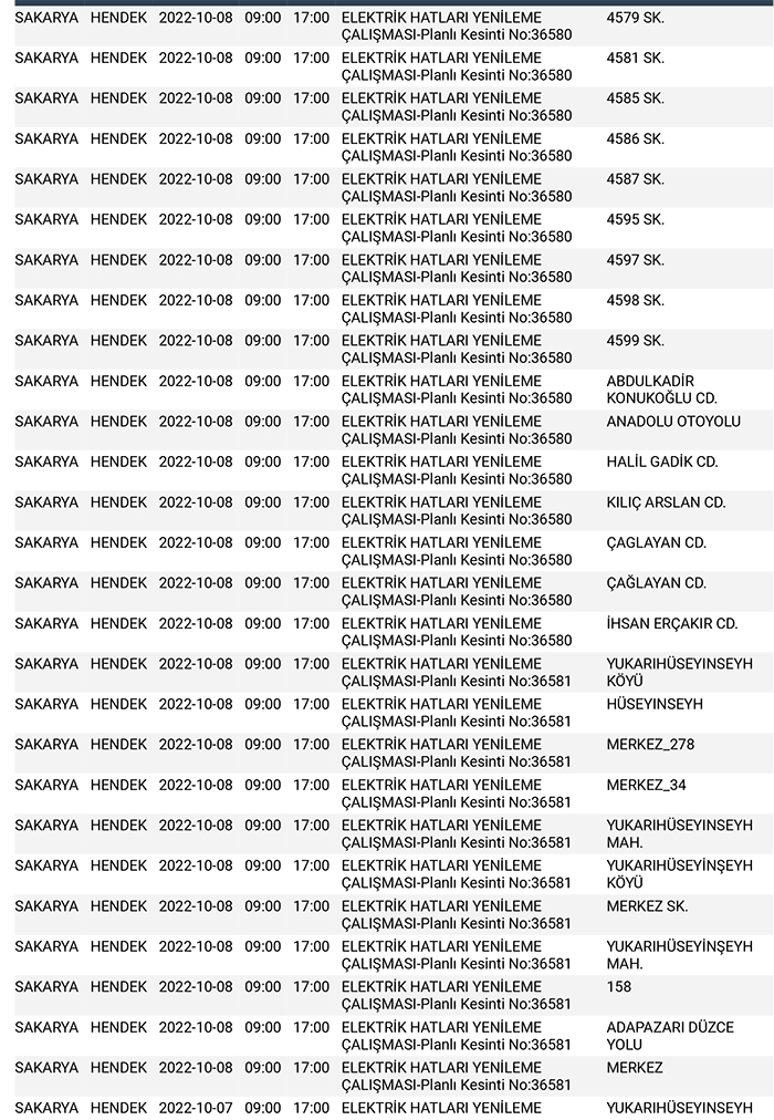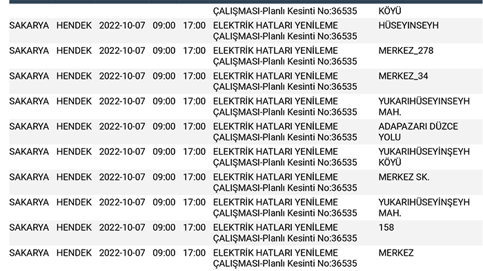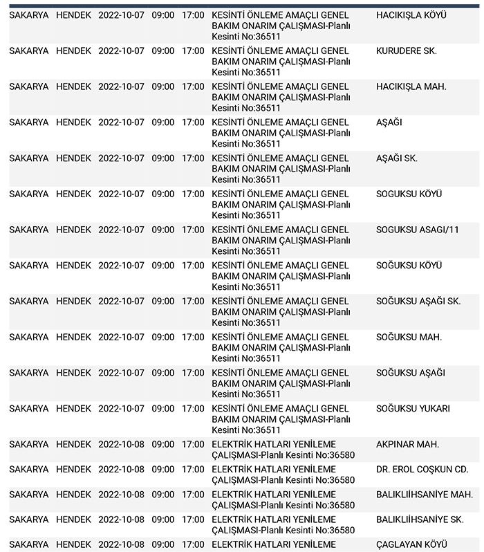 SEDAŞ’tan yapılan planlı elektrik kesintisi duyurularına göre, Hendek’te bugün 81 ayrı noktada Sabah 09:00’dan başlamak üzere 17.00’a kadar “Elektrik Hatları Yenileme ve Kesinti Önleme Amaçlı Genel Bakım Onarım Çalışmaları” kapsamında planlı elektrik kesintisi uygulanacağı öğrenildi.