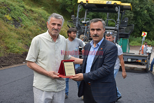Sakarya Büyükşehir Belediyesi tarafından başlanan Dikmen grup yolu sıcak asfalt çalışmaları dolayısıyla Dikmen Mahallesi adına Dikmen Mahalle muhtarı Menderes Ayvaz tarafından Hendek Belediyesi koordinatörü M.Nedim Alkan’a vermiş olduğu katkılardan dolayı plaket verildi.