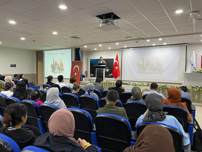 Eğitim Fakültesi Dekanlığı ve Hendek Gençlik Merkezi Müdürlüğü işbirliği ile “Dünden Bugüne Kudüs” adlı konferans etkinliği düzenlendi.