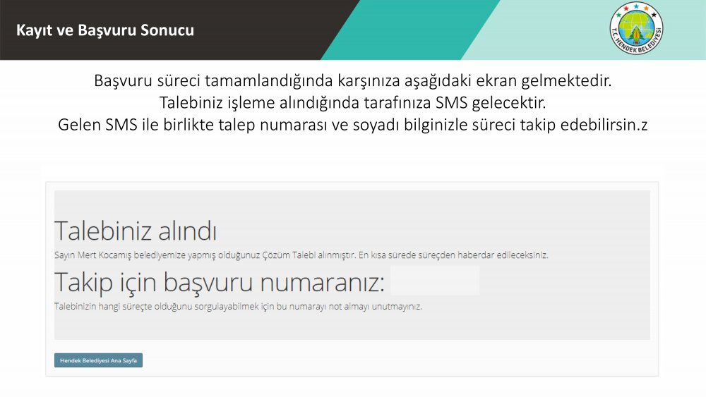 7- Talebiniz işleme alındıktan sonra tarafınıza gelen sms ile sürecinizi takip edebilir, başvuru sayfasından da sorgulama yapabilirsiniz.