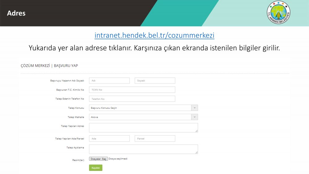 1- www.intranet.hendek.bel.tr/cozummerkezi adresinde yeni bir sayfa açılır.