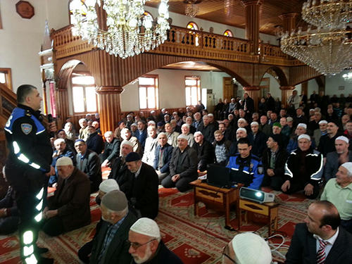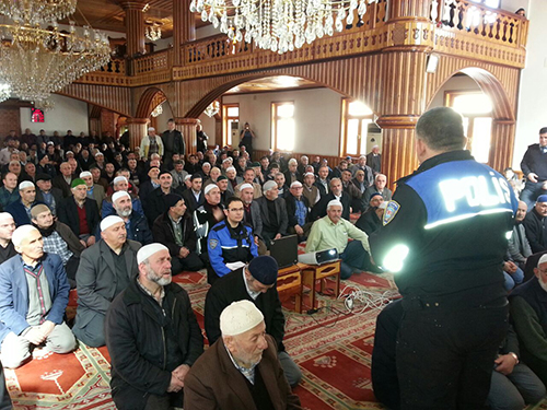 Uyuşturucu ile Mücadelede hız kesmeyen Emniyet okullar haricinde Merkez Camide de vatandaşlarla bir araya geldi. Cami de Vatandaşlara Madde bağımlılığı konusunda cemaate bilgi veren Toplum Destekli Şube Müdürü Halil İbrahim KESKİN, gençlerin bu tuzaktan uzak durmalarını ifade ettiler. Ailelerin kendi çocuklarını iyi tanımlarını söyleyen Keskin, evlatlarını iyi tanıyan ailelerin sıkıntı yaşamadıklarını belirtti. Keskin , " çocuklarınızın arkadaşlarını iyi tanıyın. kimlerle geziyor, kimler yiyip içiyor bu gibi durumları araştırın. yoksa çocuklarınızın bu tuzağa düşmekten kurtaramazsanız" dedi.