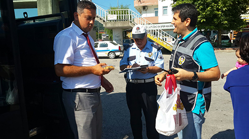 Güvenli ve emniyetli bir şekilde seyir halinde olan sürücülere trafik ekipleri gerekli kontrolleri yaptıktan sonra  sürücülere “duyarlı ve güvenli sürücü olduğunuz için sizlere teşekkür ederim” diyen Trafik ekipler amiri Komiser Cabbar Erdoğan daha sonra sürücülere bayram üzeri baklava ikram etti.
