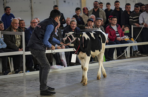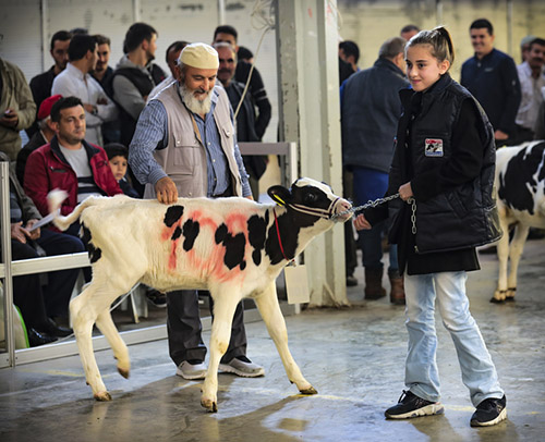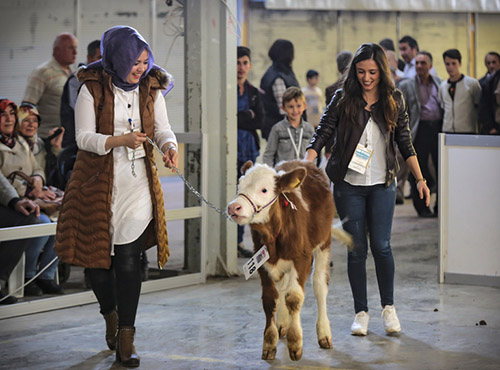 GL Platform Fuarcılık tarafından Sakarya Ticaret Borsası ev sahipliğinde Hendek'te düzenlenen Tarım Hayvancılık Makinaları Teknolojileri ve Yem Fuarı, üçüncü gününde bu kez podyuma buzağılar çıktı. Sakarya Damızlık Sığır Yetiştiricileri Birliği (DSYB) tarafından düzenlenen Holstein ve Simmental Buzağı Güzellik Yarışması renkli görüntülere sahne oldu. Kimi buzağı podyuma girmemek için yerlere yattı kimi kendisine uzatılan içi süt dolu biberonun peşinden koştu.
