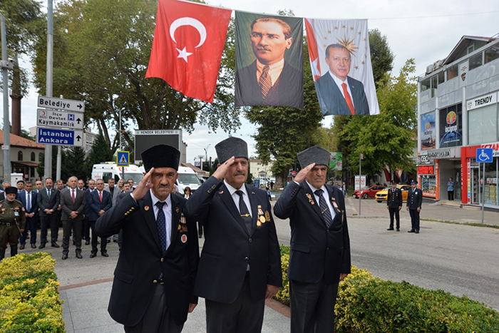 Hendek Cumhuriyet Meydanı Atatürk Anıtı önünde gerçekleşen törene, Hendek Kaymakamı Halil İbrahim Acır, Hendek Belediye Başkanı Turgut Babaoğlu, Hendek Cumhuriyet Başsavcısı Ayhan Yenilmez, Hendek İlçe Emniyet Müdürü Şevket İlhan, Hendek İlçe Jandarma Komutanı Yüzbaşı Sercan Candan, Türkiye Muharip Gaziler Derneği Başkanı Ferhat Albayrakoğlu, Siyasi Partilerin İlçe Başkanları, askeri erkan, emniyet personelleri, protokol üyeleri ve çok sayıda vatandaş katıldı. Atatürk Anıtı’na çelenklerin koyulması ile başlayan tören, saygı duruşunda bulunulması ve İstiklal Marşı’nın okunmasıyla devam etti. Ardından Askerlik Şubesi Başkanı Personel Asteğmen Erdem Güler ile Türkiye Muharip Gaziler Derneği Hendek Temsilcisi Ferhat Albayrakoğlu günün anlam ve önemini belirten konuşmalar yaptı. Konuşmaların ardından tören sona erdi.