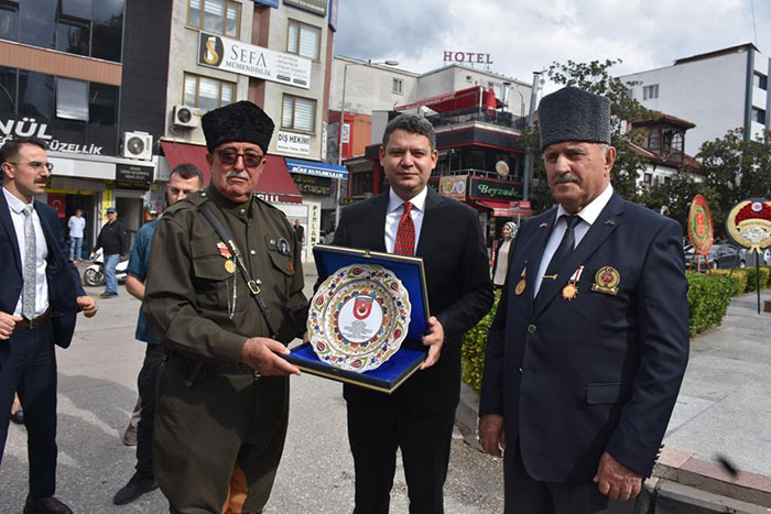 Kuvayı Milliye ve Mücahitler Derneği Başkanı Mustafa Baş tarafından Hendek Kaymakamı Hacı Hasan Gökpınar, İl Garnizon Komutanı Müh. Alb. Mehmet Fair ve Hendek Belediye Başkan Vekili Kamil Menteş’e günün anısına plaket verildi.