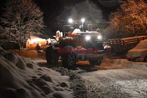 Hendek Belediyesi karla mücadele ekipleri gece gündüz demeden yol açma çalışmalarına devam ediyor.