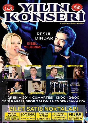 25 Ekim 2014 Cumartesi günü Hendek Yeni Spor salonunda konser düzenlenecek.