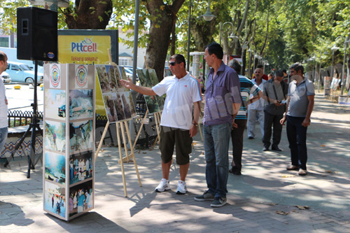 HAKUT üyeleri 17 Ağustos depreminde yaşanan felaketin yer aldığı fotoğrafları sergileyerek Vatandaşları bilgilendirme çalışmaları yaptı.