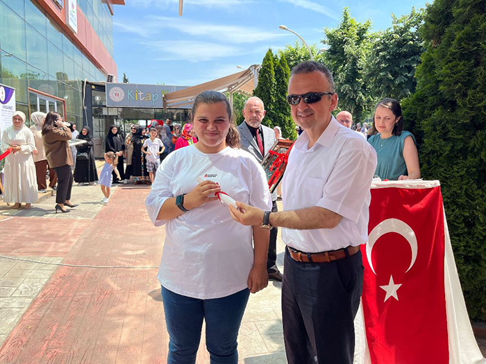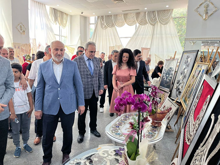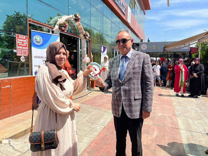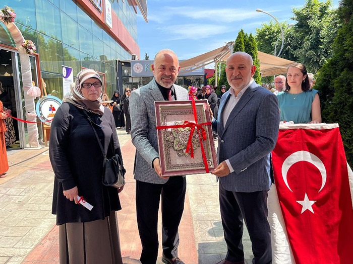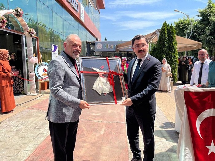 Giyim, El sanatları, mefruşat ve Nakış Sergisi açılış kurdelesini Kaymakam Halil İbrahim Acır, Cumhuriyet Başsavcısı Ayhan Yenilmez, Belediye Başkanı İrfan Püsküllü, İlçe Milli Eğitim Müdürü Murat Çekiçcioğlu ile birlikte kesti.