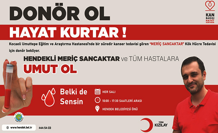 Hendek Belediyesi ve Türk Kızılay’ı iş birliğiyle ilçedeki sporcuların ve halkın katılımıyla 11 Ekim Salı günü saat 13.30’da kan bağış kampanyası düzenleniyor. Ayrıca tedavi gören Hendekli Meriç Sancaktar’a donör aranıyor.