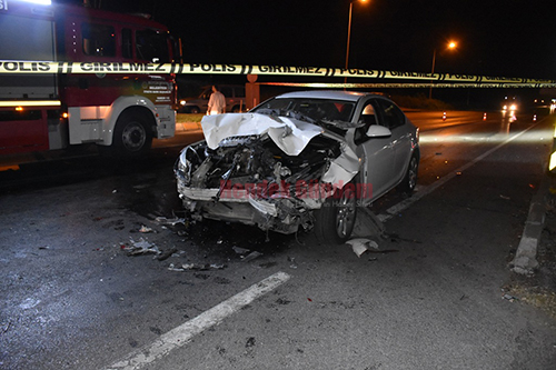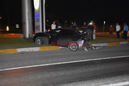 Çarpışmanın şiddeti ile kırmızı ışıkta bekleyen M.Ö. idaresindeki otomobil savrularak 2. OSB levhasına çarparak durabildi.