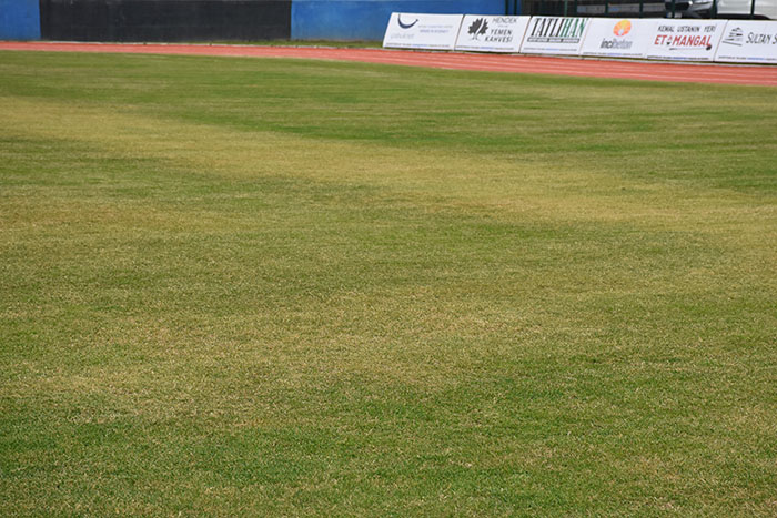 Atatürk Stadının zemininde gözle görülür şekilde meydana gelen ani renk değişimi sonrası futbolseverlerin akıllarında çimlerde bir hastalık mı meydana geldi ya da çimler mi yandı sorularını getirdi.