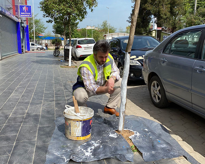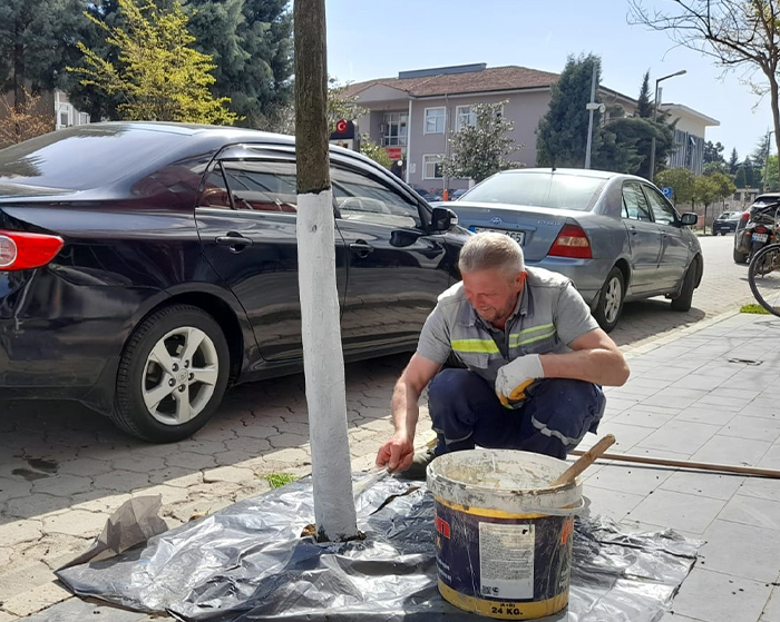 Ayrıca yapılan çalışmalar kapsamında ilçe merkezinde bulunan ağaçların gövdeleri boyanarak korunması sağlanıyor. Ekipler yeşilin korunmasına ve ağaç sayısının artması için çalışmalarını hızla sürdüreceklerini açıkladı.