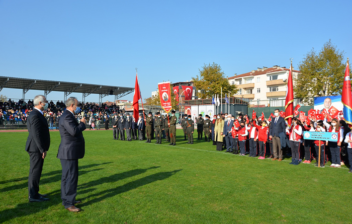 Kaymakam Acır, Başkan Babaoğlu ile birlikte öğrenciler ve tüm vatandaşları selamlayarak Cumhuriyet Bayramı’nı kutladı. Ardından saygı duruşunda bulunuldu ve İstiklal Marşı okundu. Günün anlam ve önemini belirten konuşma Kaymakam Acır tarafından yapılırken, öğrenciler tarafından Cumhuriyet konulu şiirler okundu. Folklor gösterisi ve sporcular tarafından gösteri yapılan kutlamalar kapsamında “29 Ekim Cumhuriyet” konulu çeşitli yarışmalarda dereceye giren öğrenciler Kaymakam Acır ve Başkan Babaoğlu tarafında ödülleri takdim edildi. Gaziler ve tüm okullar ellerinde Türk Bayrakları ile tören geçişi yaparak Cumhuriyet coşkusunu doya doya yaşadılar.