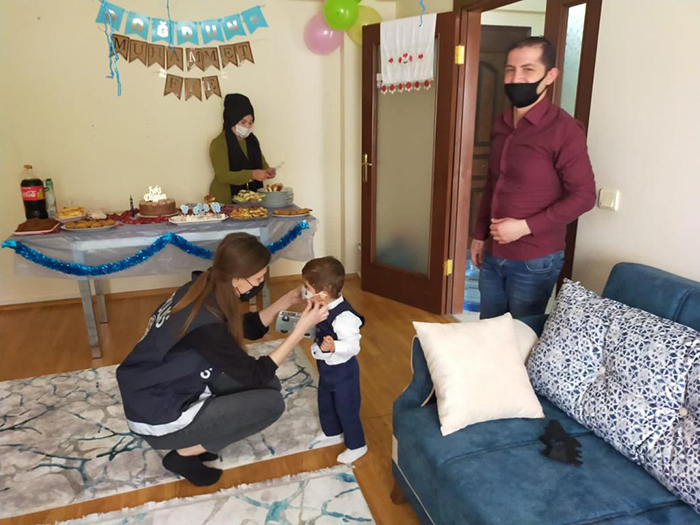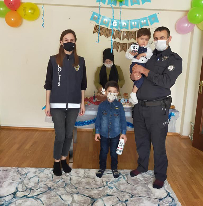 Hendek İlçe Emniyet Müdürlüğü personelleri çocuğun bu çağrısına kayıtsız kalmayarak doğum gününü kutlamak için Muhammedin evine giderler.