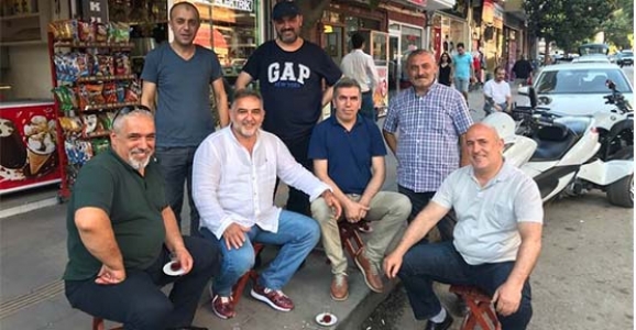 İlçe esnaflarından Murat Davarcı’nın işyerinin önünde Büyükşehir Belediye Başkan Yardımcısı Şenay Sakal, geçtiğimiz günlerde emekli olan Adliye Yazı İşler Müdürü İsmail Beyazkoç, Haberhendek editörü Mehmet Kavis ve esnaflar Adil Karabulut, Erol Yaş ve İlyas Demirci çaylarını yudumlayarak ilçe gündemine dair sohbet ettiler.