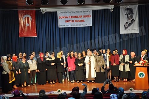 Programın sonunda Hendek Halk Eğitimi Merkezi Müdürü Necati Tan emeği geçen usta öğreticilere ve mankenlere tüm kadınlar adına karanfil takdim ederek bütün emekçi kadınların kadınlar gününü kutlayarak , ayrıca tüm kadınlar adına yine Hendek Halk Eğitimi Merkezi Müdürü Necati Tan , Münevver Nalbant’a çiçek vererek 8 mart bütün emekçi kadınların kadınlar gününü tebrik etmesiyle program son buldu.