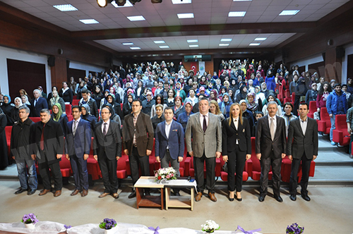 Defile öncesi Kadınlar günü nedeniyle SAÜ Eğitim Fakültesi öğrencilerinden Burçin Evliyaoğlu kısa bir konuşma yaparak geceye katılanlara teşekkür etti.