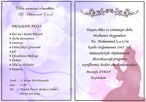 Hendek İmam hatip Orta Okulu düzenlemiş olduğu kutlu doğum haftası etkinliğine Hendek halkını davet etti.