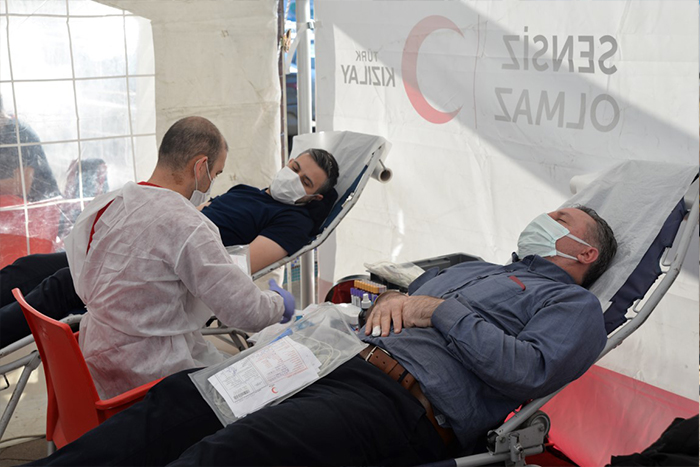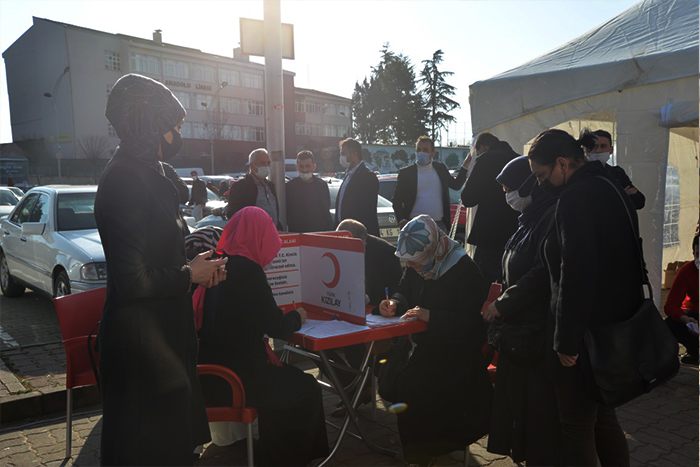 Belediye önünde saat 11.00’de başlayan kan bağış kampanyasına vatandaşlar yoğun ilgi gösterirken, kan bağışının saat 22.00’ye kadar devam edeceği açıklandı. Kan vermek isteyenlerin kısıtlamadan muaf olduğu açıklanırken, Cuma namazı sonra COVİD-19 tedbirleri kapsamında program düzenlendi. Programa Hendek Cumhuriyet Başsavcısı Sebahattin Erkaya, Hendek Belediye Başkan Yardımcıları Hüdaverdi Bahadır, Fatih Öztürk ve Hızır Çağrı Güngör, siyasi partilerin ilçe başkanları, kurum müdürleri, muhtarlar ve Kızılay yetkilileri katıldı.