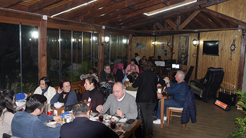 Hendek’te Bir balık restoranında tam kadro bir araya gelen Türk sanat müziği korosu önce akşam yemeği ile geceye başladı. Kora adına açılış konuşması yapan Meral Erdemli geceye katılımlar için herkese teşekkür etti.