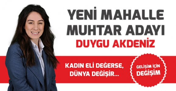 Yerel Seçimlerde Hendek Yenimahalle’den Muhtar Adayı olduğunu açıklayan Duygu Akdeniz, bir Bayan ve Genç olarak bu göreve talip olduğunu ve Muhtar seçilmesi halinde Yeni Mahalle’de birçok projeye ve yeniliğe imza atacağını söyledi.