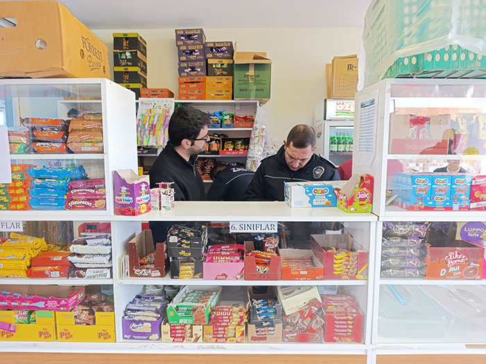 Öğrencilerin sağlığını korumak ve güvenli gıda tüketimini sağlamak amacıyla gerçekleştirilen kontrollerde, ürünlerin son kullanma tarihinden hijyen şartlarına kadar birçok başlık titizlikle incelendi.