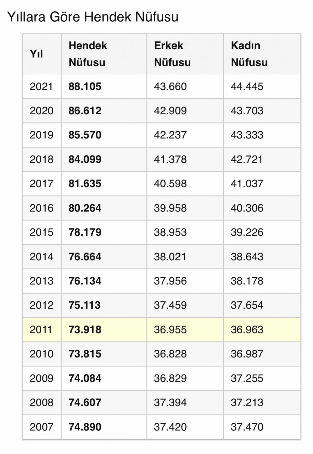 Hendek Toplam Nüfus: 88.105