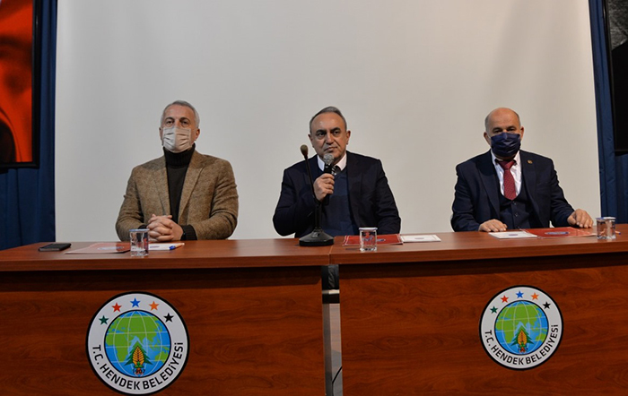 Daha sonra konuşan Hendek Belediye Başkanı Turgut Babaoğlu ise, “Sayın Kaymakamımıza bu toplantı nedeniyle teşekkür ediyorum. Hendek Belediyesi olarak 24 saat kesintisiz bir şekilde vatandaşımız için görev yapıyoruz. Hizmet ederken hiçbir ayrım yapmıyor, nerede bir sorun varsa orada ekiplerimizi görevlendiriyoruz. Her muhtar kendi mahallesi için bende 91 mahallemin tüm sorunlarını çözmek için gayretle çalışıyorum. Sizin gibi bende sorunsuz, problemsiz, hiçbir sıkıntı olmamasını arzu ediyorum. Ama oluyor, olacakta. En aza indirmek için buradayız. Sizinle çalışmaktan çok mutluyum. Özellikle kırsalda ve sonra merkezde eskiden beri gelen sorunları çözmeye çalışıyoruz. Allah ilçemize hizmet eden, görev yapan herkesten razı olsun. Veriyle konuşmak gerekirse bizden önce 5 yılda yapılanın 2 katından fazlası biz 2,5 yılda yaptık” diye konuştu.