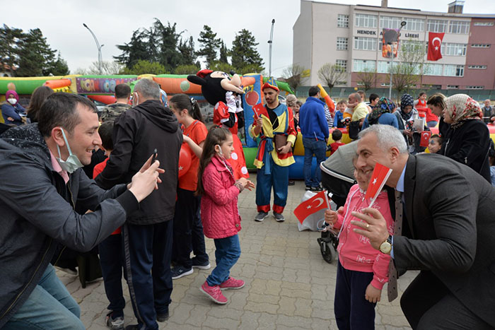 Şenlik alanını ziyaret eden Hendek Belediye Başkanı Turgut Babaoğlu burada ailelerle görüşüp çocukların neşesine ve sevincine ortak oldu. Çocuklara bayram vesilesiyle Türk Bayrağı dağıtan Başkan Turgut Babaoğlu, çocukların bayramlarını kutladı.