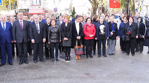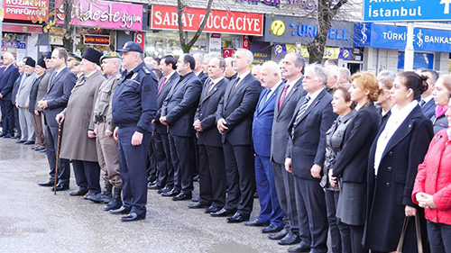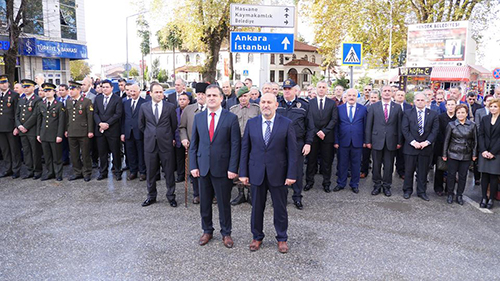 10 Kasım Atatürk’ü anma Töreninde 2 dakikalık saygı duruşu ve istiklal marşı ile bayraklar yarıya indirildi, akabinde Hendek İlçe Kaymakamı İdris Akbıyık ve Hendek Belediye Başkanı İrfan Püsküllü’nün Atatürk Anıtına Koyduğu çelenk ile son buldu.