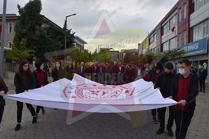Hendek Kaymakamlığı önünden Cumhuriyet Alanı’na Gençlik Yürüyüşü ile başlayan tören, Cumhuriyet Meydanında bulunan Atatürk Anıtına çelenk koyulması sonrası Hendek Yeni Kapalı Spor Salonunda devam etti.