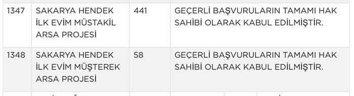 “İlk Evim Arsa” projesi kapsamında Hendek’te talep sayısından az başvuru olması nedeniyle tüm başvuru sahipleri kura çekimi olmadan hak sahibi olurken, 441 Müstakil ve 58 Müşterek olmak üzere toplamda 499 başvuru arsa sahibi Hendek’te “İlk Evim Arsa” projesinde arsa sahibi olmuş olurken, TOKİ tarafından Arsa sahibi olmaya hak kazanan 499 kişinin isim listeleri ise henüz açıklanmadı.
