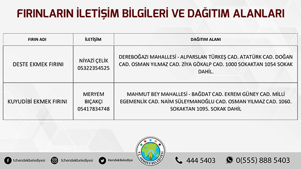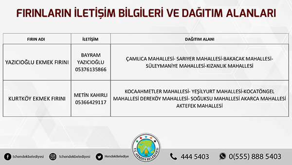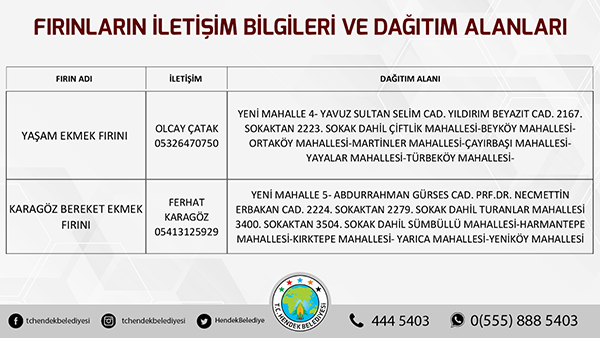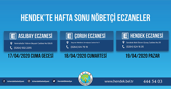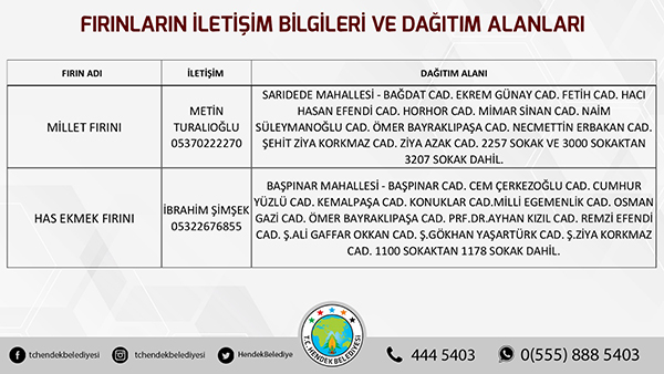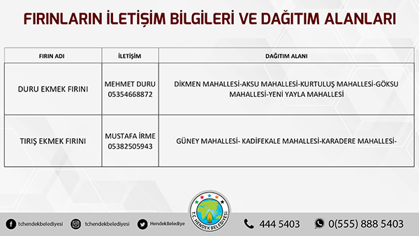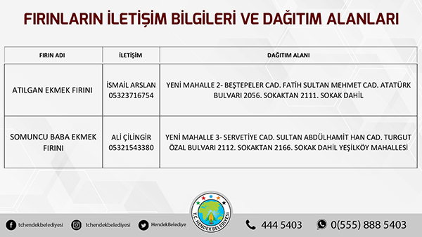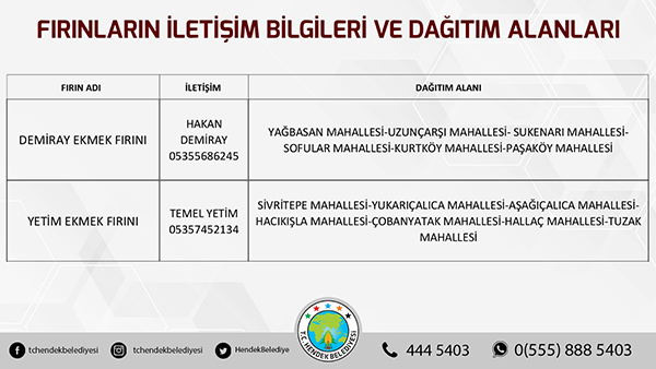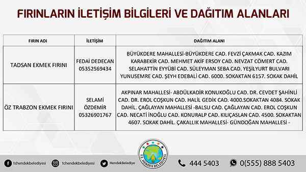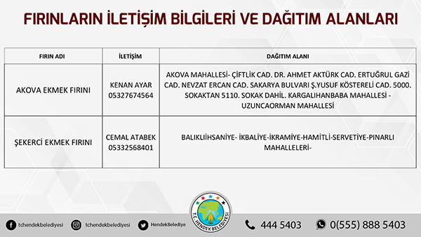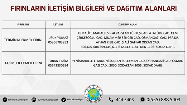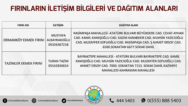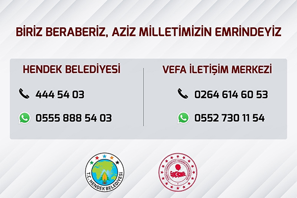 Hendek Belediyesinden yapılan açıklamada, “ Hemşehrilerimizin sokağa çıkma yasağı süresi boyunca sorun yaşamaması adına Hendek Belediyesi olarak yoğun tedbirler almış durumdayız. Vatandaşlarımızın sıkıntısız bir hafta sonu geçirmesini arzu ediyoruz. Fırınların ekmek dağıtım alanları belirlenirken, vatandaşlarımızın kendi mahallelerinde hizmet verecek olan fırınlarımızla irtibata geçmesini önemle rica ediyoruz. Ayrıca her hangi bir başka ihtiyaç halinde ise Hendek Vefa Sosyal Destek Grubu ile Hendek Belediyesi Çağrı Merkezi vatandaşlarımızın hizmetinde olacaktır” denildi.