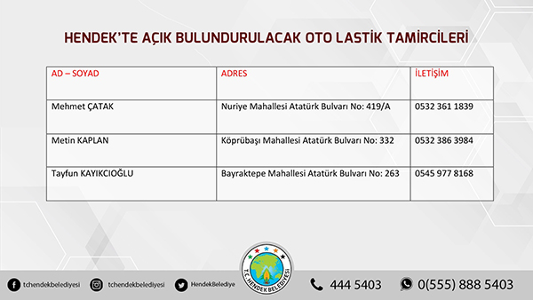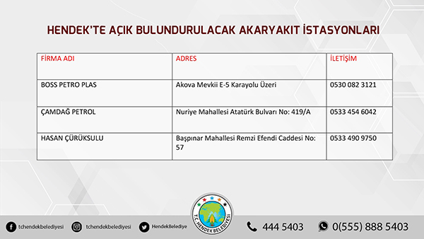 Ayrıca akaryakıt istasyonu ve lastik tamircilerinin listesi yayınlandı.