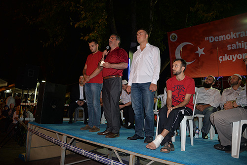 Program sonrası, Hendek’te olan ve aslen Hendekli olan Sakarya Esnaf ve Sanatkarlar Odası Başkanı Hasan Alişan, bir selamlama konuşması yaptı. Alişan konuşmasında “ Hepiniz biliyorsunuz ki 15 Temmuz ‘dan itibaren Türkiye ayağa kalkmıştır. Hendek’te o günden beri ayaktadır, Hendekliyim ve sizlerle gurur duyuyorum. Birileri bu ülkede yanlış yaptı ve başaramadı. Demokrasimizi elimizden almaya çalıştılar, demokrasimize ihanet ettiler ve çocuklarımızın geleceğine ihanet ettiler. Tüm ülkemiz buna müsaade etmedi ve etmeyecektir. Sizlerin gücünü ve kudretini takdir ediyorum. 15 Temmuz da bir girişim yaptılar.