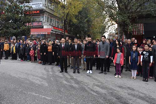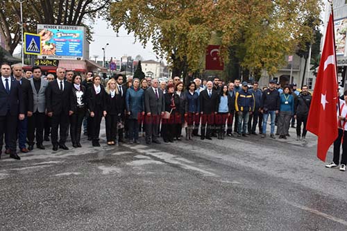 Saygı Duruşu ve istiklal marşının okunmasından ardından Atatürk Anıtına Hendek Kaymakamı Orhan Burhan ve Hendek Belediye Başkanı İrfan Püsküllü tarafından Çelenklerim sunulmasının ardından anma Töreni Hendek Ticaret merkezinde devam etti.