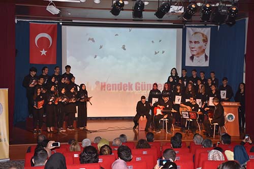 Hendek Atike Hanım Anadolu Lisesi tarafından hazırlanan Hendek Ticaret Merkezi’nde düzenlenen tören Saygı duruşu ve istiklal marşının okunması ile başladı.